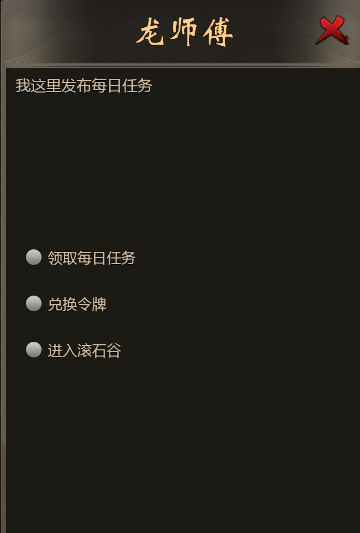 龙师傅:可以兑换令牌和进入滚石谷(每日)